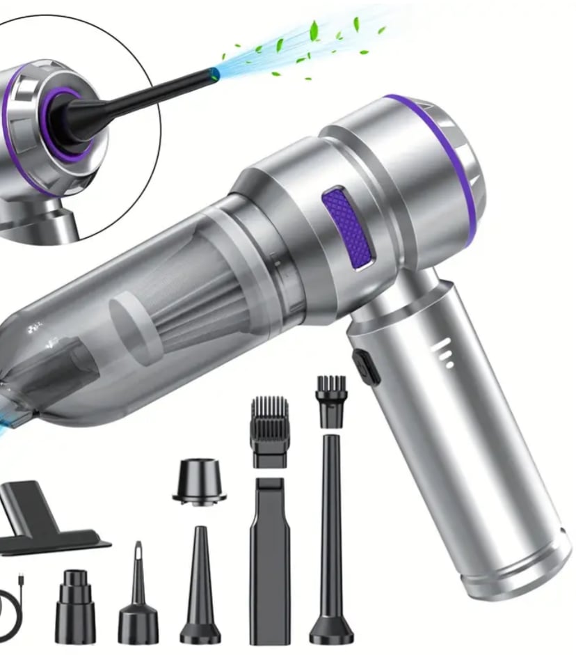 Multiple mini car vac/blower. Great to get in all the small spaces. Battery life last 72 hours after a fully charge. Extra attachments and more.